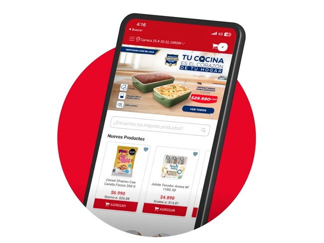 A través de la app, puedes explorar el catálogo, hacer tu pedido y solicitar entrega a domicilio de productos frescos como frutas, verduras, carnes, granos, artículos de panadería, aseo personal y productos para el hogar. Asimismo, cuenta con cobertura en distintas zonas del país.