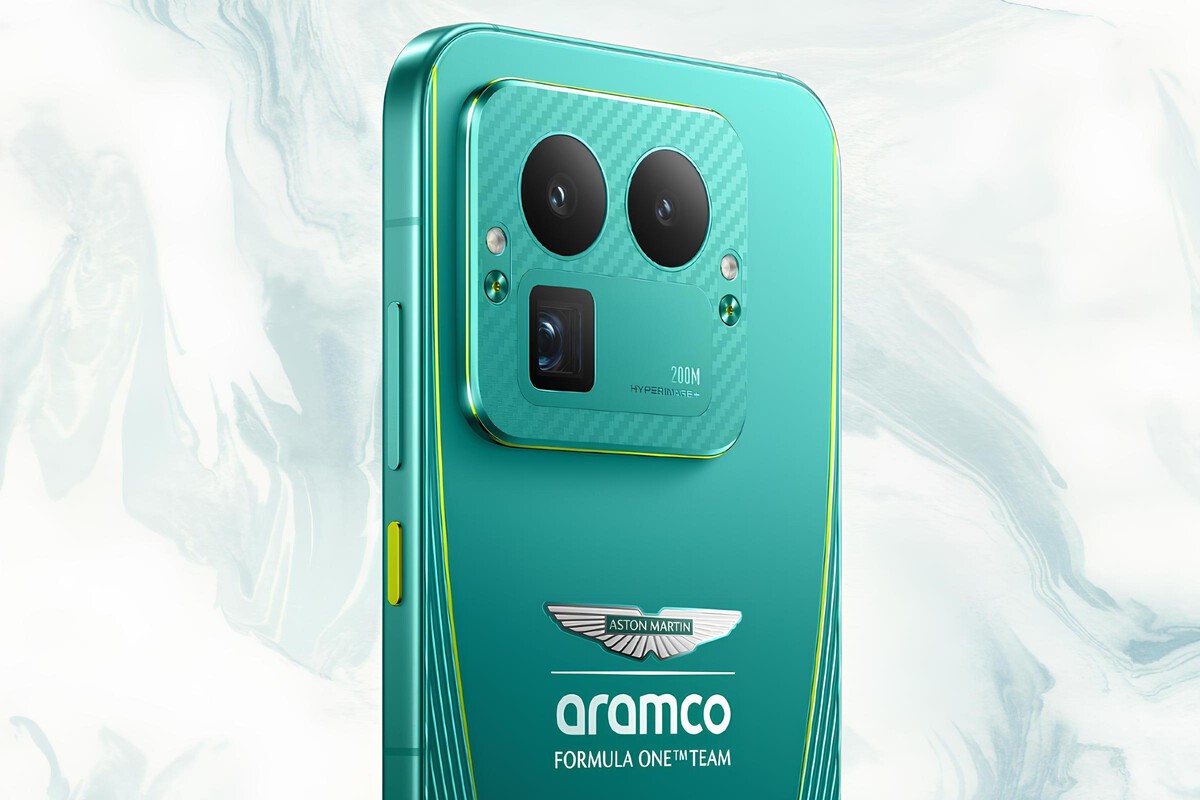 El sistema operativo también se adapta a la temática, con animaciones, fondos de pantalla, iconos y efectos de carga inspirados en la Fórmula 1. Las marcas de agua de la cámara llevan el sello Aston Martin, integrando la identidad del equipo en la experiencia cotidiana del usuario.