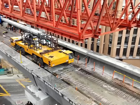 Estas piezas se colocan sobre vanos ya construidos, permitiendo que el proceso avance sin interferir con la movilidad en el suelo y reduciendo significativamente los tiempos y complejidades de instalación en áreas urbanas densamente ocupadas.
